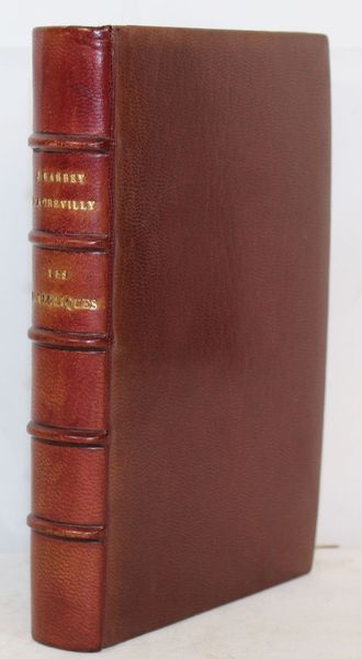 | Observations : | Très bel exemplaire de cette édition originale devenue rare, avec sa couverture au bandeau rouge sans mention d'édition et avec toutes les coquilles carractéristiques de la première émission (p. 15, l.6: vnos; p. 25, l2: seulemen,t; p. 121, l11: s'enrudir; p. 124, l7: lui; p. 186, l10: Hartfort; p. 311, l24 & 25: lui et qu'il; p. 322, l1: produite). Suite à une poursuite par le Parquet de la Seine, l'ouvrage fut d'abord interdit, puis autorisé en 1875. Sur un tirage de 2200 exemplaires, 480 exemplaires qui se trouvaient chez le brocheur furent quand même détruits, avec le consentement de Barbey. A leur parution, Les Diaboliques, considérées comme l'oeuvre la plus célèbre de l'auteur, firent grand bruit de par leur originalité, leur titre et le scandale qu'elles soulevèrent. L'écrivain les rédigea dans la période la plus sombre de sa vie, entre 1863 et 1873, après sa rupture avec Trébutien en 1858 et l'échec de son projet de mariage en 1860. Très bel exemplaire parfaitement relié par Gruel et enrichi d'un portrait et d'un mot manuscrit d el'auteur à propos d'un de ses portraits. | |||||