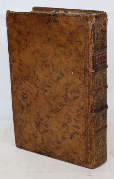 | Reliure : | Veau marbré, dos à nerfs orné de caissons et fleurons dorés, pièce de titre maroquin rouge, tranches rouges. Petit accident à la coiffe sup., petite et ancienne restauration à un une charnière, amorce de fente à un mors, usures. Reliure de l'époque. | |||||