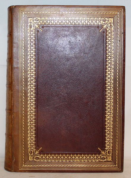 | Reliure : | Plein chagrin brun, plats ornés d'un large motif géométrique et floral dans de multiples encadrements de filets dorés , roulette dorée intérieure, dos à nerfs richement orné, roulette sur les coupes, tranches dorées. Dos et premier plat partiellement pass | |||||