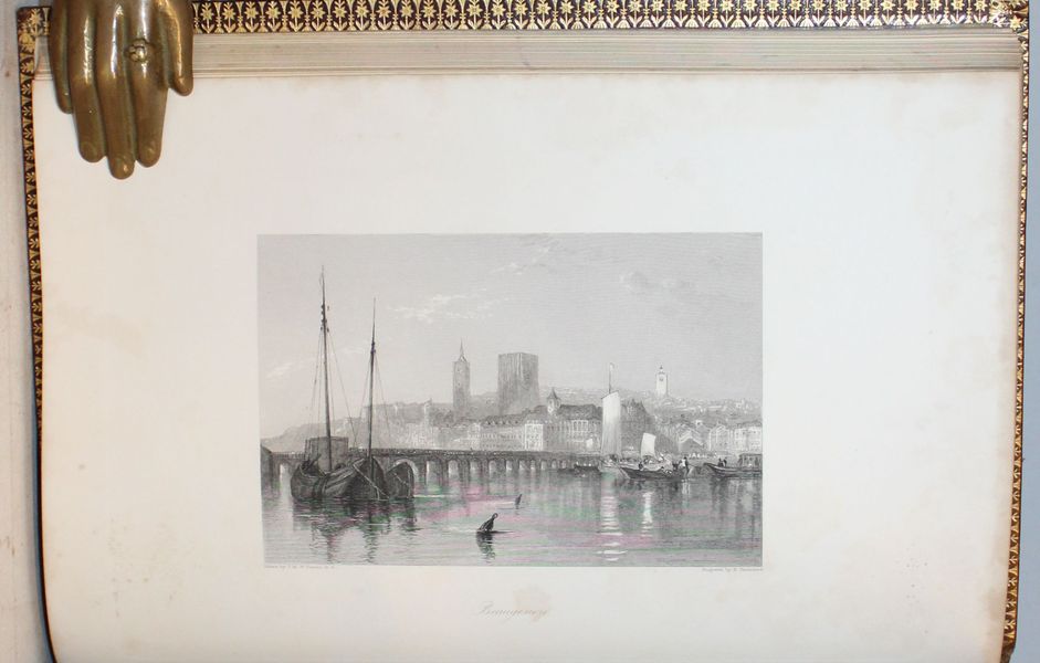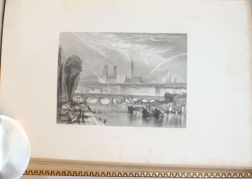 | Format : | Grand in-8 de LVI dont le titre frontispice gravé, à la date de 1853, 336 pages avec 61 figures hors-texte gravées d'après Joseph Mallord Willian Turner. Quelques rares rousseurs présentes notamment sur le titre-frontispice, infimes sur les gravures et le texte en est parfaitement exempt. | |||||