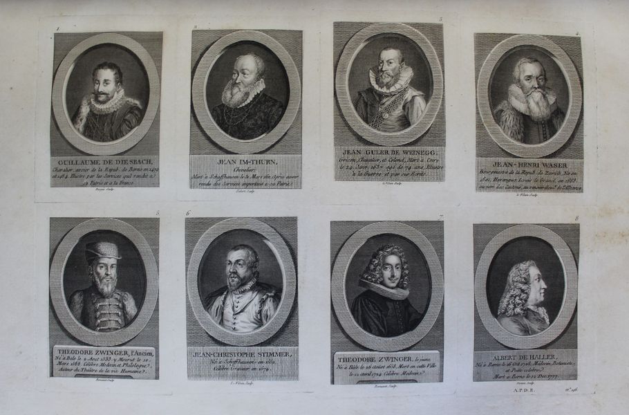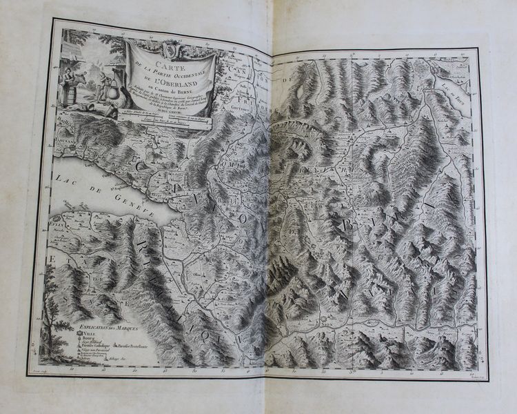 | Format : | In-folio, (2)f. (titre et table), 362 pages, 10 planches hors-texte de portraits (soit 63 portraits), 7 grandes vues à pleine page, 28 vues à demi-page et une grande carte à double page de la partie occidentale d'Oberland canton de Berne. Manque la vue de la ville d'Avenche et le plan perspectif des cantons de Lucerne. De fines rousseurs et quelques claires mouillures marginales, un feuillet bruni. Bon état intérieur. | |||||