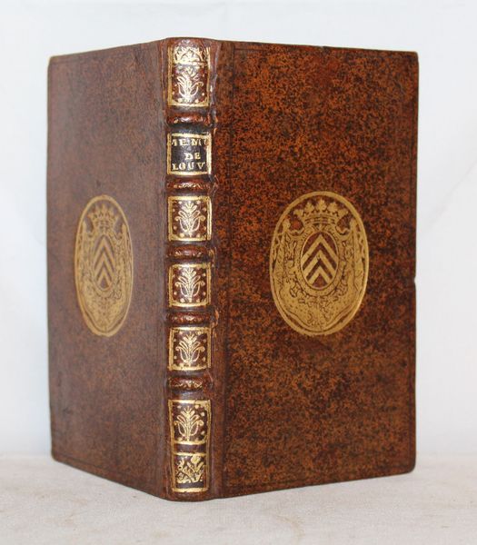 Reliure : Veau granité, dos à nerfs orné de fleurons dorés, armes dorées sur les plats. Reliure de l'époque. (fines et habiles restaurations).