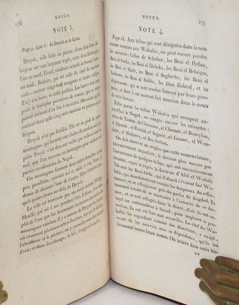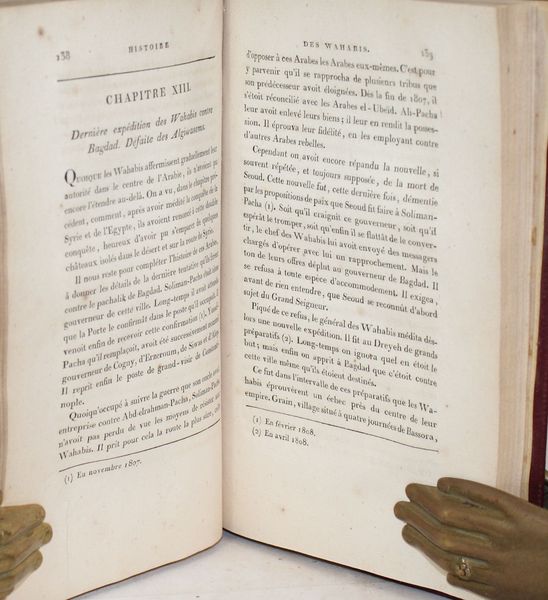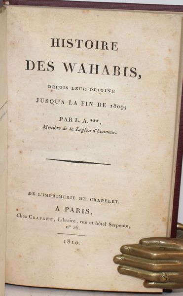 Edition originale de la première étude européenne sur les origines et l'histoire du wahhabisme par l'orientaliste français Louis Alexandre Olivier de Corancez(1770-1832), Consul général de France à Alep. Se présentant comme un retour aux sources, le « cinquième rite » de l'islam sunnite a réussi en moins d'un siècle d'existence de la monarchie Saoudite, à remodeler en profondeur l'islam sunnite au détriment des quatre rites majeurs. Cet ouvrage permet, de par la position d'observateur averti de l'auteur, d'en saisir les principes fondateurs ainsi que les mécanismes d'alliance entre les Al-Saoud et Ibn Abdelwahhab qui se répartirent le pouvoir temporel et l'autorité spirituelle ébranlant ainsi les fondements du pouvoir califal. De Corancez nous livre, dans cet ouvrage majeur, la première description des moeurs et des usages des wahhabites ainsi que de leurs expéditions guerrières qui mirent à sac le Hijaz, de La Mecque à Médine en passant par Mascat au nom de la réforme des moeurs et de la religion. Ouvrage de référence, il valut à son auteur le titre de correspondant de la troisième classe de l'Institut de France. Détail : Origine des Wahabis. Histoire du schekh Mohammed et d’Ibn Seoud – Religion et usages des Wahabis – Première expédition du pacha de Bagdad contre les Wahabis. Prise d’Imam-Hussein – Prise de la Mecque – Siége de Djedda; attaque de Médine; déroute des Wahabis Situation des Wahabisaprès la mort d’Abd-elazis. Premières expéditions de Seoud – Première attaque de Bassora par les Wahabis. Mort de l’Imam de Mascate – Expédition du Pacha de Bagdad contre les Wahabis – Prise de Médine. Accueil des pèlerins à la Mecque – Attaque d’Imam-Ali, de Zeber, et de Semawa – Prise de Djedda; interruption du Pèlerinage de la Mecque – Situation des Wahabis, et des provinces voisines, en 1807 – Principaux événmens de l’année 1808. Tentatives des Wahabis contre la Syrie et l’Egypte – Dernière expédition des Wahabis contre Bagdad. Défaite des Algiwasems... |