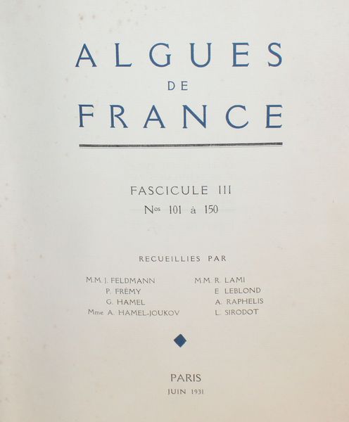 | Titre : | Algues de France recueillies / par P. Allorge, J. Feldmann, P. Fremy, G. Hamel, E. Leblond, A. Raphelis, R. Lami, L. Sirodot, M. Fontaine, S. Fortin, R. Meslin, M. Weibel. | |||||