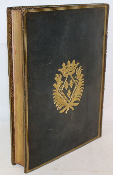 | Reliure : | Plein maroquin vert olive, triple filets dorés d'encadrement sur les plats, armes au centre, dos à nerfs orné, filet sur les coupes, roulette dorée intérieure, tranches dorées. Reliure de l'époque. (dos uniformément passé, légers frottements). | |||||