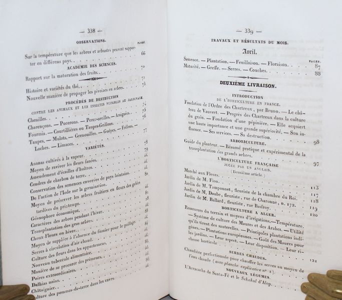 | Observations : | Très bel ensemble sur toutes les connaissances en architecture, horticulture, arboriculture, floriculture, viticulture etc. nécessaires au jardinier pour créer, entretenir et soigner son jardin. | |||||