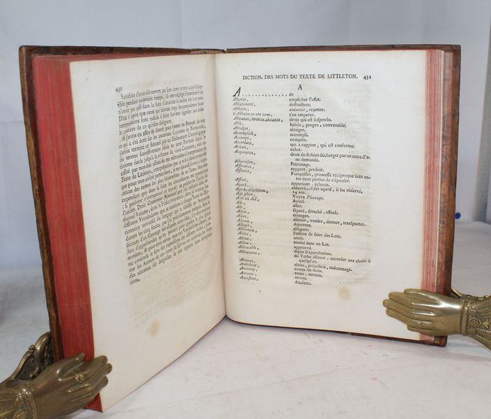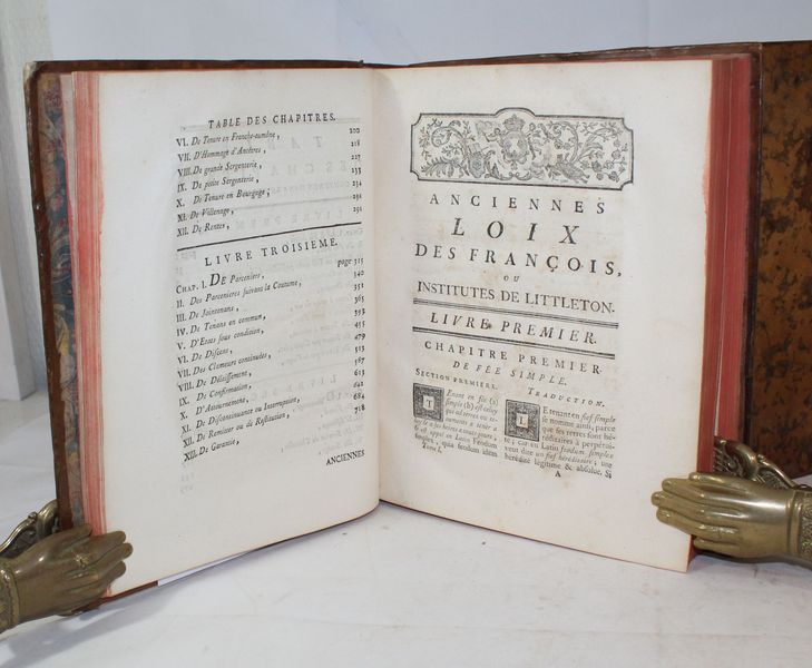 | Observations : | Cet ouvrage est en fait une traduction française annotée du livre que le jurisconsulte Littleton composa en 1475. Dans ses Institutes, Littleton est celui de tous les jurisconsultes anglo-normands, dit Houard, qui a le mieux approfondi les lois françaises, telles qu'elles ont été données à la nation par Guillaume le Conquérant. Il porte le scrupule, selon son commentateur Coke, jusqu'à distinguer en chaque article de son recueil ce qui est la commune loi, c'est à dire la loi amenée de France par Guillaume, d'avec ce qui a été institué pour l'explication de cette loi par les chartes, statuts ou édits postérieurs. Très bon exemplaire en veau d'époque. | |||||