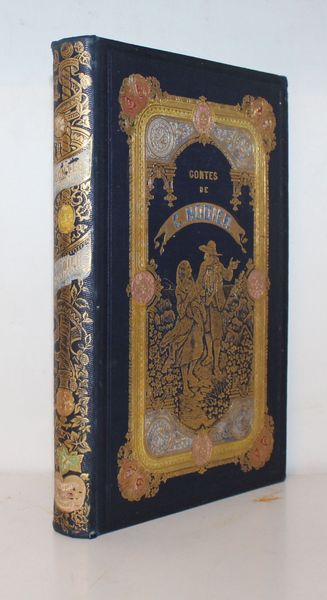 | Reliure : | Pleine percaline bleu-nuit d'éditeur. Belle et grande plaque dorée et en couleurs sur le premier plat, large motif doré et en couleurs au second, dos à nerfs trè sorné. Titres un peu pâlis au dos, petit accident à la percaline à l'encoche de coiffe en têt | |||||
