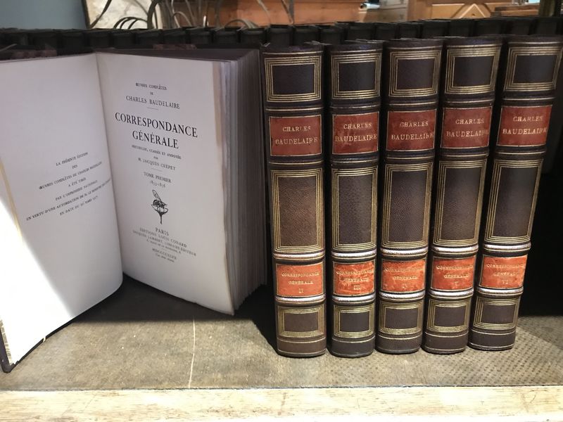 | Observations : | Cette édition avec notice, d'importants éclaircissements et notes de M. Jacques Crépet comprend : -Les Fleurs du Mal, les Epaves, portrait de Baudelaire. -Les Paradis Artificiels. La Fanfarlo. -Petits poëmes en Prose (le Spleen de Paris). Le Jeune Enchanteur. -Curiosités esthétiques. -L'Art romantique. Traductions de Charles Baudelaire : -Poe Edgar, Histoires extraordinaires. -Nouvelles Histoires extraordinaires. -Aventures d'Arthur Gordon Pym. -Eureka. La génèse d'un poëme : le Corbeau. -Histoires grotesques et sérieuses. -Oeuvres posthumes, 3 volumes. -Correspondance générale, 1833-1836 en partie originale, en 6 volumes, une reproduction de photographie en frontispice, publiée entre 1947 et 1953. Bel et rare ensemble complet des 19 volumes. | |||||