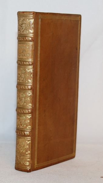 | Reliure : | Charmante reliure en plein veau blond de la première moitié du 19 ème et exécutée dans le goût du 18ème, avec triple filet doré sur les plats, dos à nerfs orné de fleurons dorés, roulette intérieure, tranches rouges, roulette dorée sur les coupes. Très bo | |||||