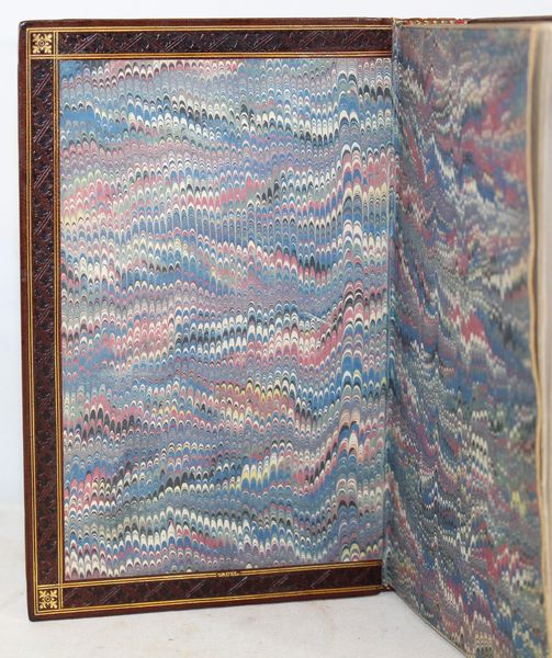 | Reliure : | Maroquin lie-de-vin janséniste de Gruel, dos à nerfs, roulette à froid entre deux double-filets dorés à l'intérieur avec fleurons dorés dans les angles, tête dorée, non rogné, couvertures et dos (dos restauré). Parfait état. | |||||