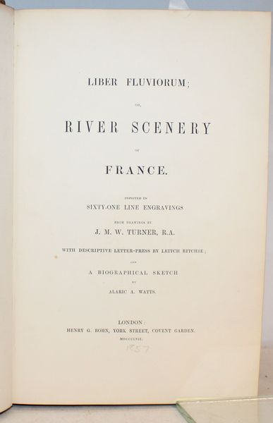| Titre : | Liber Fluviorum; or, River scenery of France. Depicted in sexty-one engravings from drawings by J. M W. Turner, R.A. With descriptive letter-press by Leitch Ritchie and a biographical sketch by Alaric A. Watts. | |||||