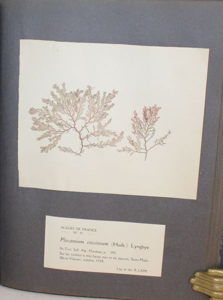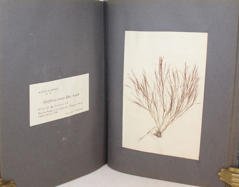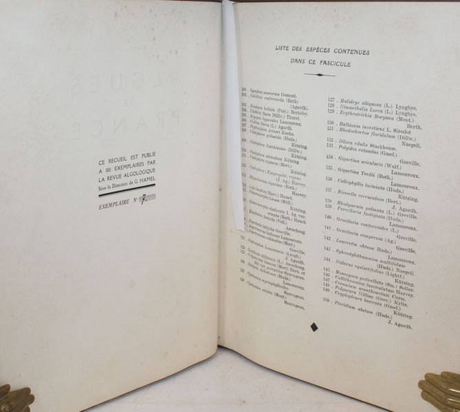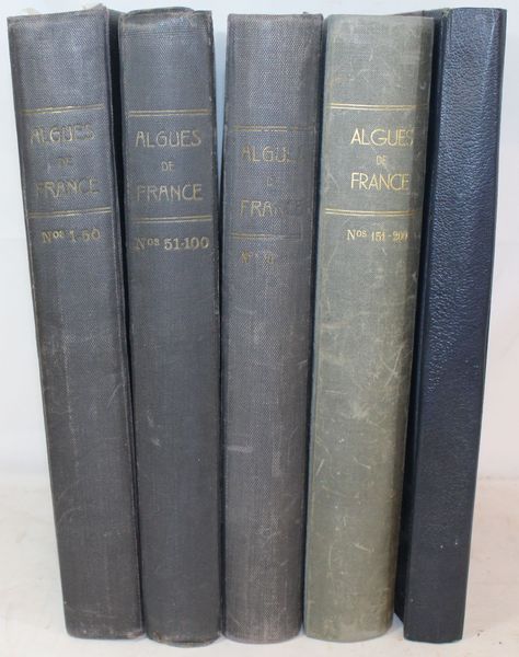 | Format : | Cinq volumes comprenant chacun 50 algues et leur descriptif, soit un total de 250 algues. Exemplaire N°7 pour les 3 premiers, exemplaire N° 56 pour le 4ème et le 5ème, Tiré à 100 exemplaires et vraisemblablement à 35 exemplaires pour la 5 ème partie. En très bon état, 3 algues avec manque (23, 68 et 92). | |||||