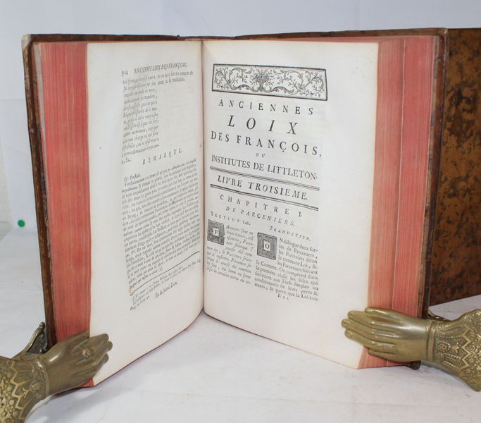 | Observations : | Cet ouvrage est en fait une traduction française annotée du livre que le jurisconsulte Littleton composa en 1475. Dans ses Institutes, Littleton est celui de tous les jurisconsultes anglo-normands, dit Houard, qui a le mieux approfondi les lois françaises, telles qu'elles ont été données à la nation par Guillaume le Conquérant. Il porte le scrupule, selon son commentateur Coke, jusqu'à distinguer en chaque article de son recueil ce qui est la commune loi, c'est à dire la loi amenée de France par Guillaume, d'avec ce qui a été institué pour l'explication de cette loi par les chartes, statuts ou édits postérieurs. Très bon exemplaire en veau d'époque. | |||||